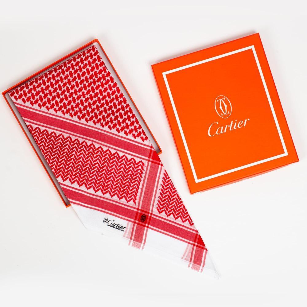 - الختم: الشماغ يحمل ختم كارتير باللون الأسود.