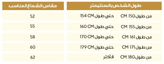 - متوفر من الشماغ العديد من المقاسات لتناسب الجميع