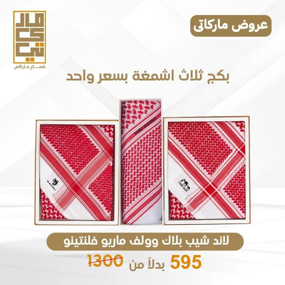 ارتقِ بإطلالتك مع بكج فاخر يضم ثلاث من أشهر وأرقى الماركات العالمية كلها بسعر شماغ واحد فقط! عرض حصري لا يفوّت – 3 أشمغة ماركات بسعر واحد فقط!(شماغ لاند شيب – شماغبلاك وولف – شماغ ماريو فالنتينو ) خامة إنجليزية أصلية نقش ثابت | فخامة تليق بك