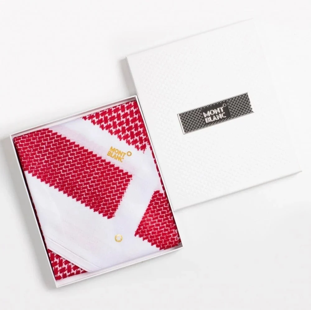 شماغ مونت بلانك الذهبي الإنجليزى خيارك الأمثل لإطلالة أنيقة، بلمسة ذهبية تعكس شخصيتك الواثقة وتفاصيلك الراقية مصنوع من أجود أنواع القطن.