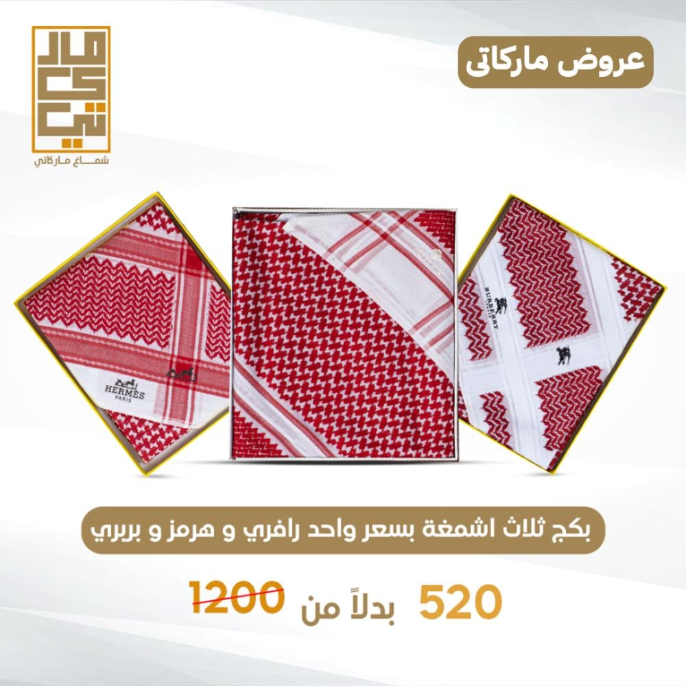 ارتقِ بإطلالتك مع بكج فاخر يضم ثلاث من أشهر وأرقى الماركات العالمية كلها بسعر شماغ واحد فقط! عرض حصري لا يفوّت – 3 أشمغة ماركات بسعر واحد فقط!(شماغ رافري – شماغ بربري – شماغ هرمز) خامة إنجليزية أصلية نقش ثابت | فخامة تليق بك