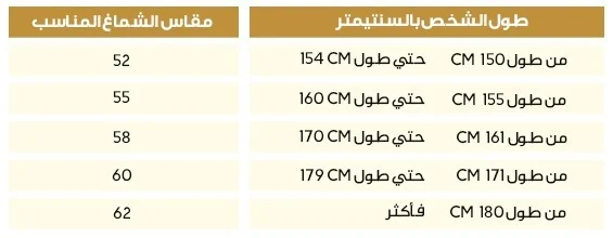 اختيار مقاس الشماغ (55، 58، 60) ليس مجرد أرقام، بل هو توازن بصري. الشماغ الكبير يعطي إحساساً بالضخامة والفخامة ويناسب طويلي القامة، بينما المقاسات المتوسطة تعطي مظهراً عملياً وأكثر انسيابية. تأكد من اختيار الحجم الذي يمنحك حرية الحركة والقدرة على ضبط "التشخيصة" التي تفضلها.
