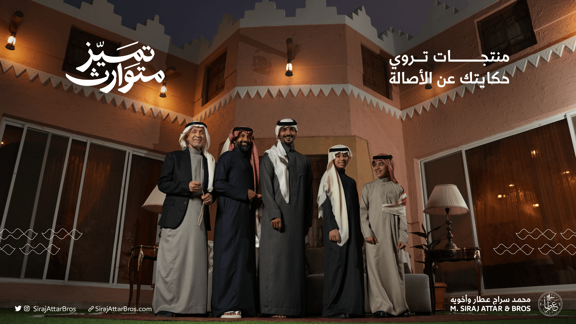 سراج العطار من الأسماء العريقة في السوق السعودي، ويعمل اليوم كـ متجر إلكتروني موثوق يقدم الأشمغة والغتر إلى جانب خبرته الطويلة في الأقمشة الرجالية.