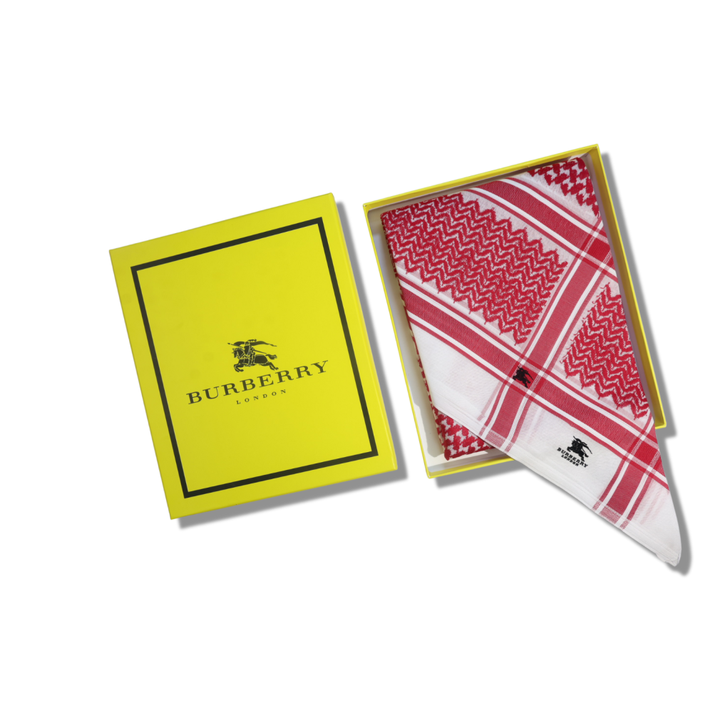 شماغ بربري مصنوع من أجود أنواع القطن تصميم فخم ونقش غايية فى الرقي ذو أطراف مشغولة بدقة تامة لتمنحك مظهرا أنيقا يدوم طول اليوم