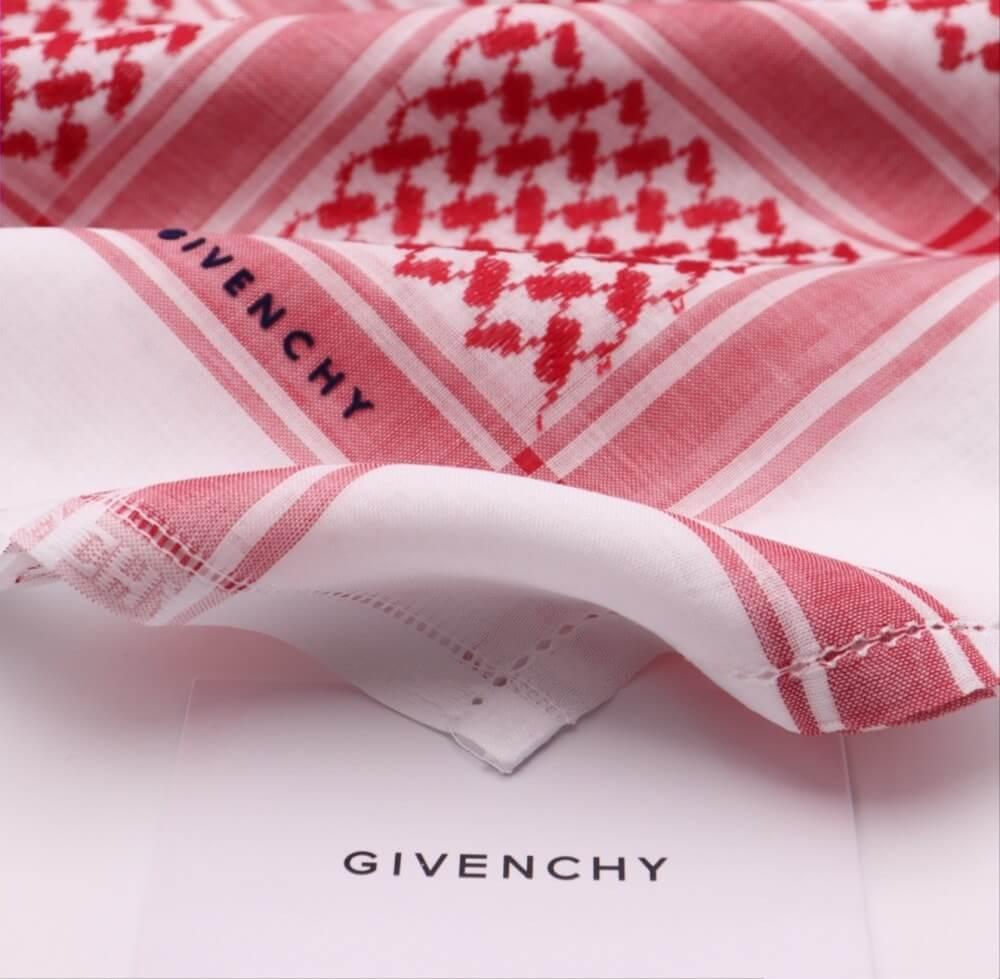 - يحمل الشماغ ختم جيفنشي باللون الأسود لمسة نهائية تعكس الأصالة والجودة العالية في كل تفصيلة.
